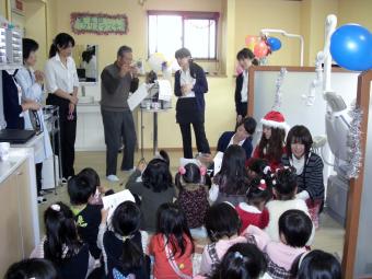 他にもクイズやブラッシング指導、ハーモニカによる歌のプレゼントを行い子どもたちと